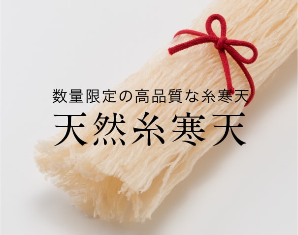 小笠原商店の天然糸寒天は、寒天本来のつるつるぷりぷりの食感が味わえるのがの特徴です。 強度、粘度、保水性に優れた、よい寒天ができる冬季に集中しておつくりしています。 限定生産の希少な寒天です。